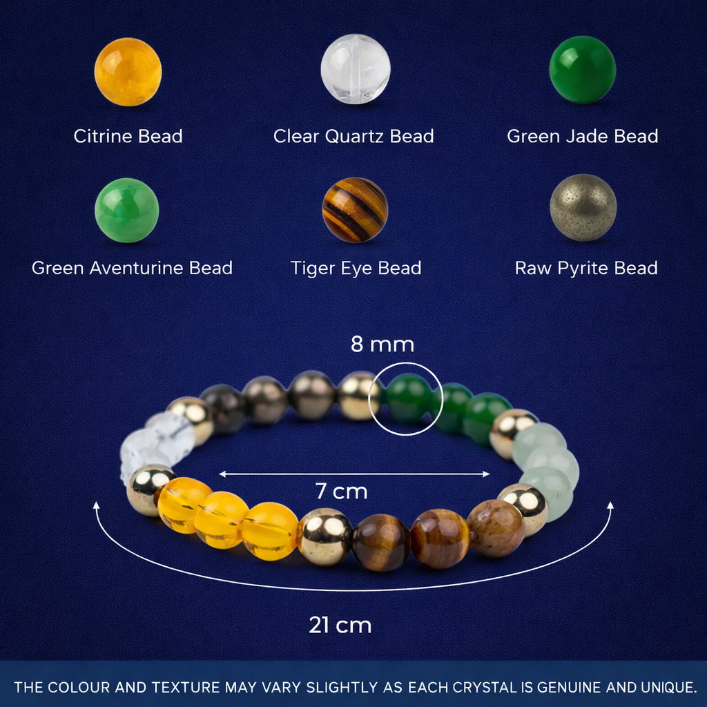 The Evoluna Dhan Yog Bracelet (Lab Certified) is designed for people who wish to attract financial prosperity, confidence, and stability into their lives. Rooted in traditional crystal wisdom, this bracelet combines carefully selected natural stones that are known to support wealth creation and personal growth.